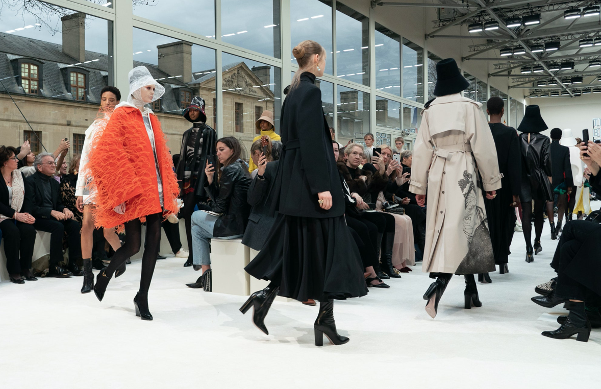 One way this message was conveyed was strongly through the styling team’s use of accessories. The main trend we saw repeating itself every other garment was the use of just one earring. Some earrings were barely noticeable studs, and some earrings were large and dangled down to the model’s shoulder. Many head-to-toe black looks were styled this way. Using just one earring over and over again is admirable, because it is a challenging look to style tastefully. Wearing one in this case worked to show off more of the wearer’s internal personality. Piccioli spoke about how some of the looks resembled a “uniform” because he wanted people to get to know the person inside the garment as opposed to judging them based on their outward appearance.